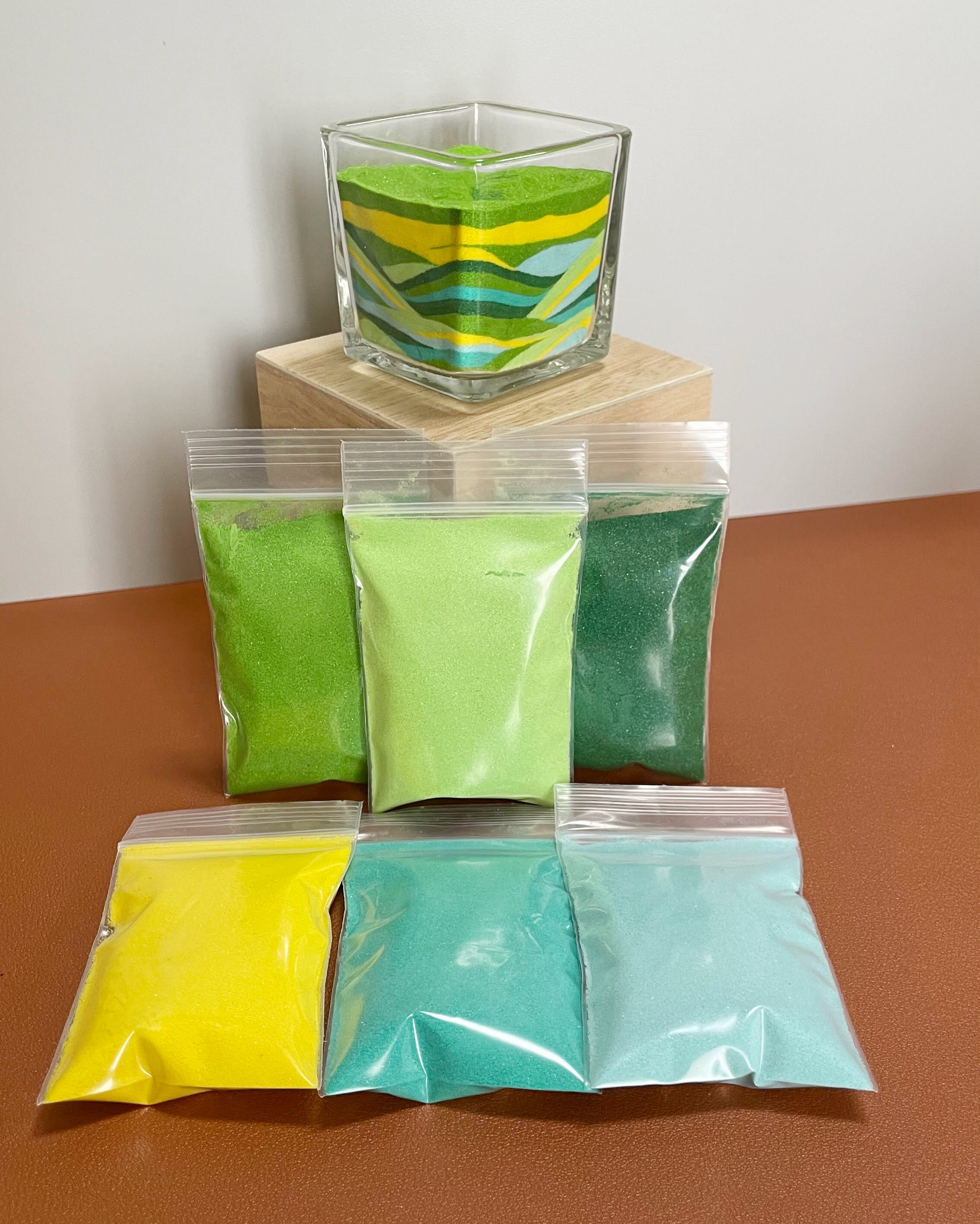 季節に合わせた6色の砂セット。色の組み合わせが苦手な方も気軽にお作りいただけます。
