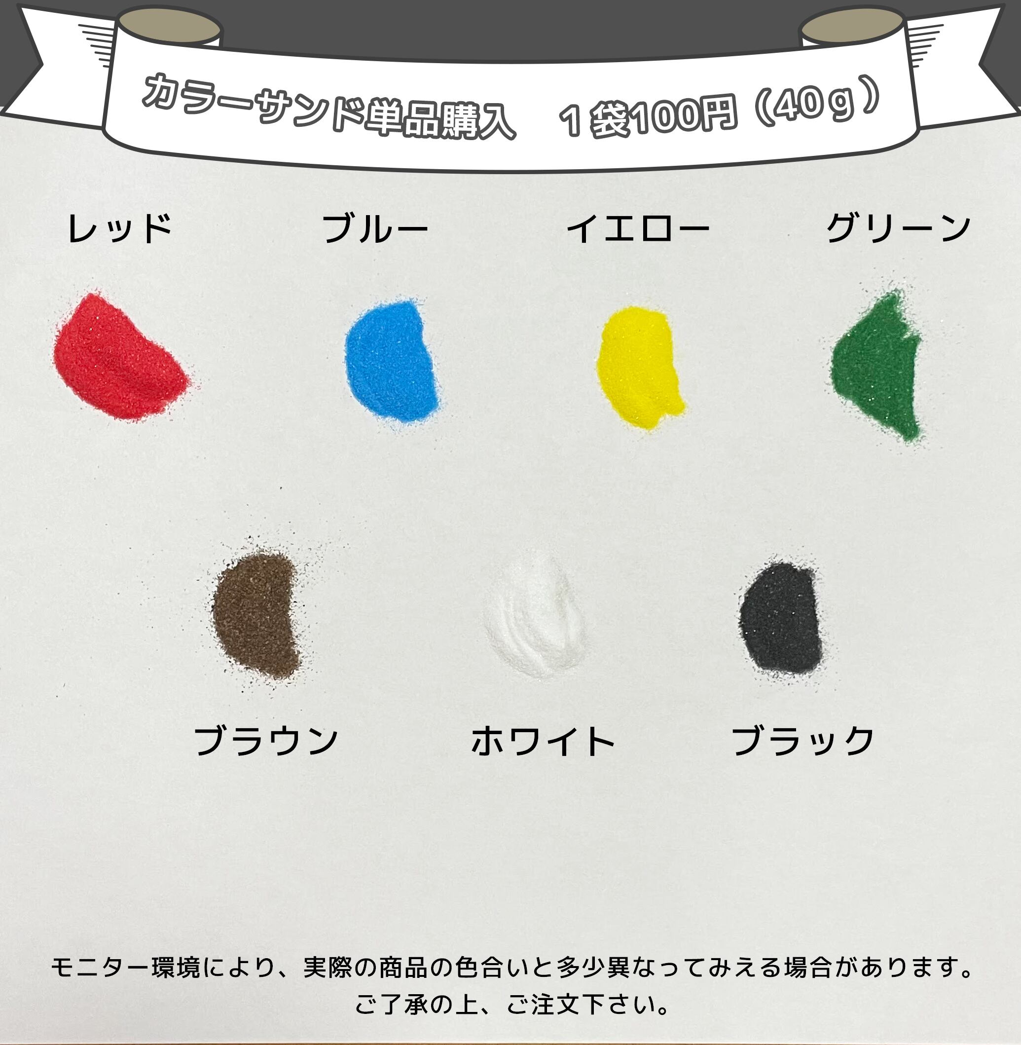 セットの6色以外にも単品カラーをご用意していますので使い方は自由自在です。あなたのイメージに合わせたサンドアートを楽しんでいただけます。