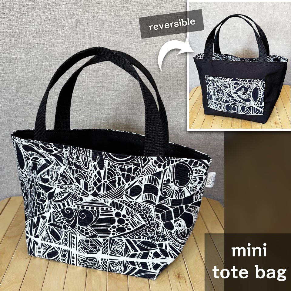 momotangleミニトートバッグ【黒生地】|リバーシブル【MTb001】