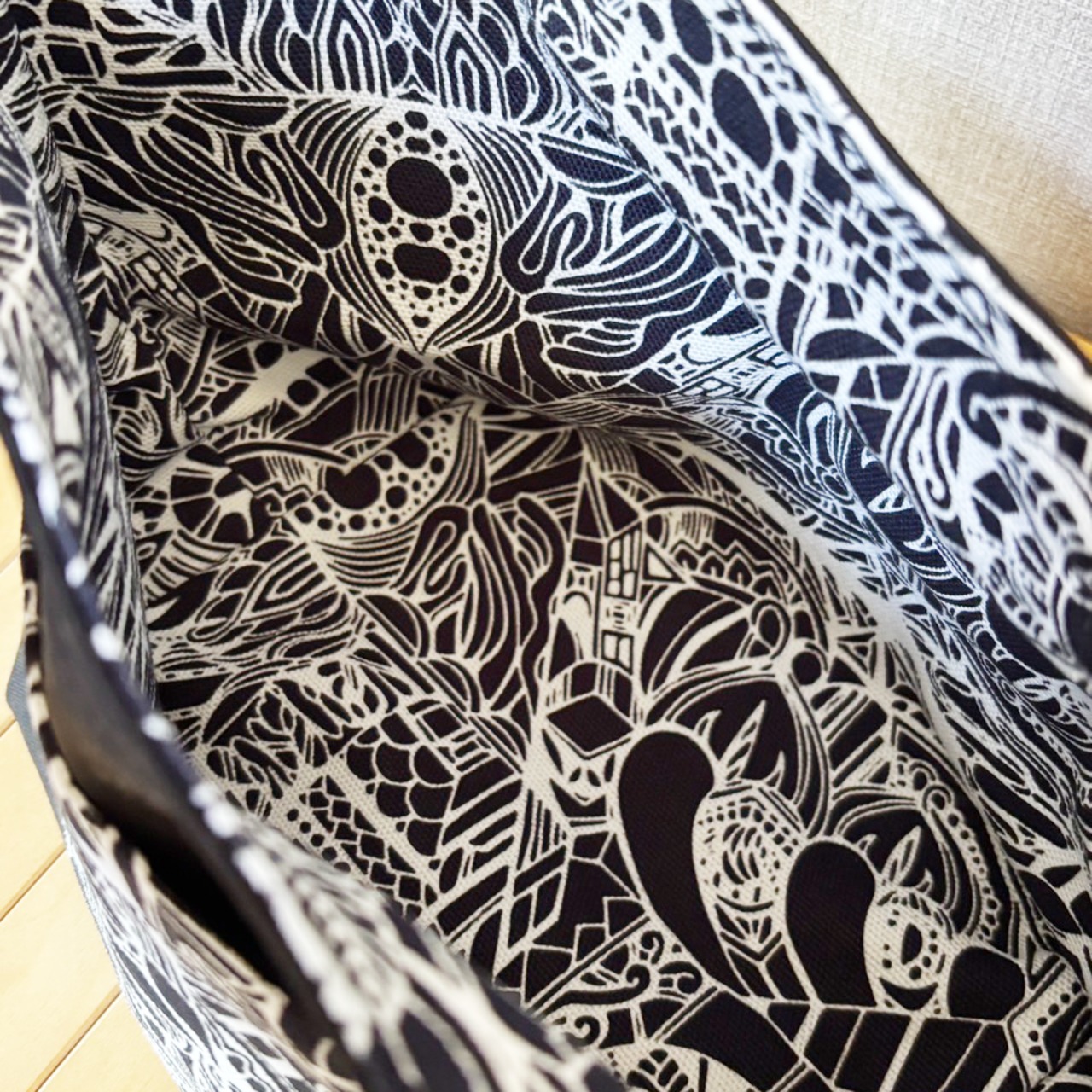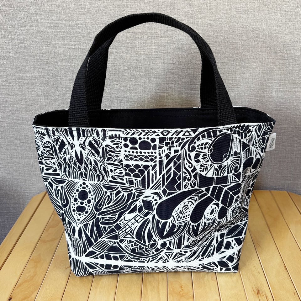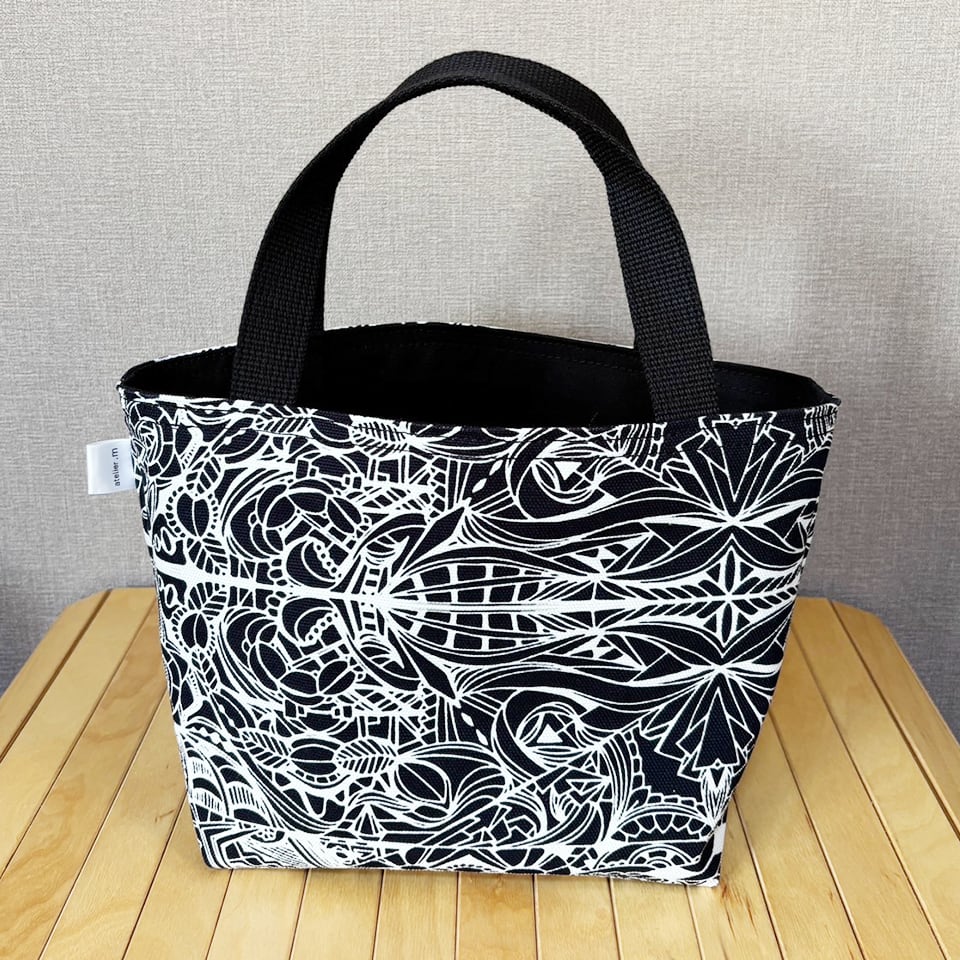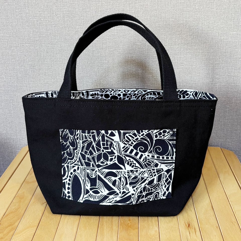 momotangleミニトートバッグ【黒生地】|リバーシブル【b002】