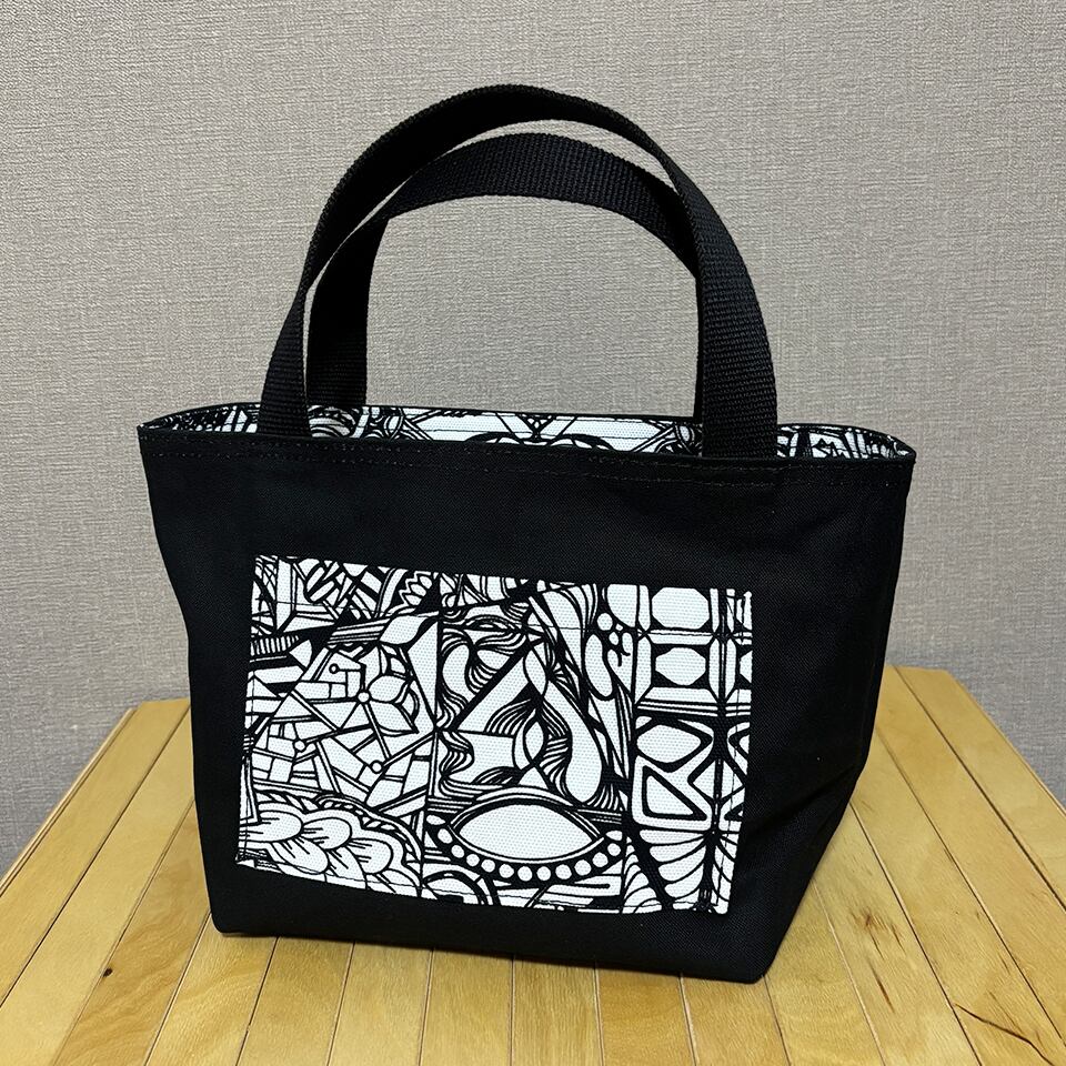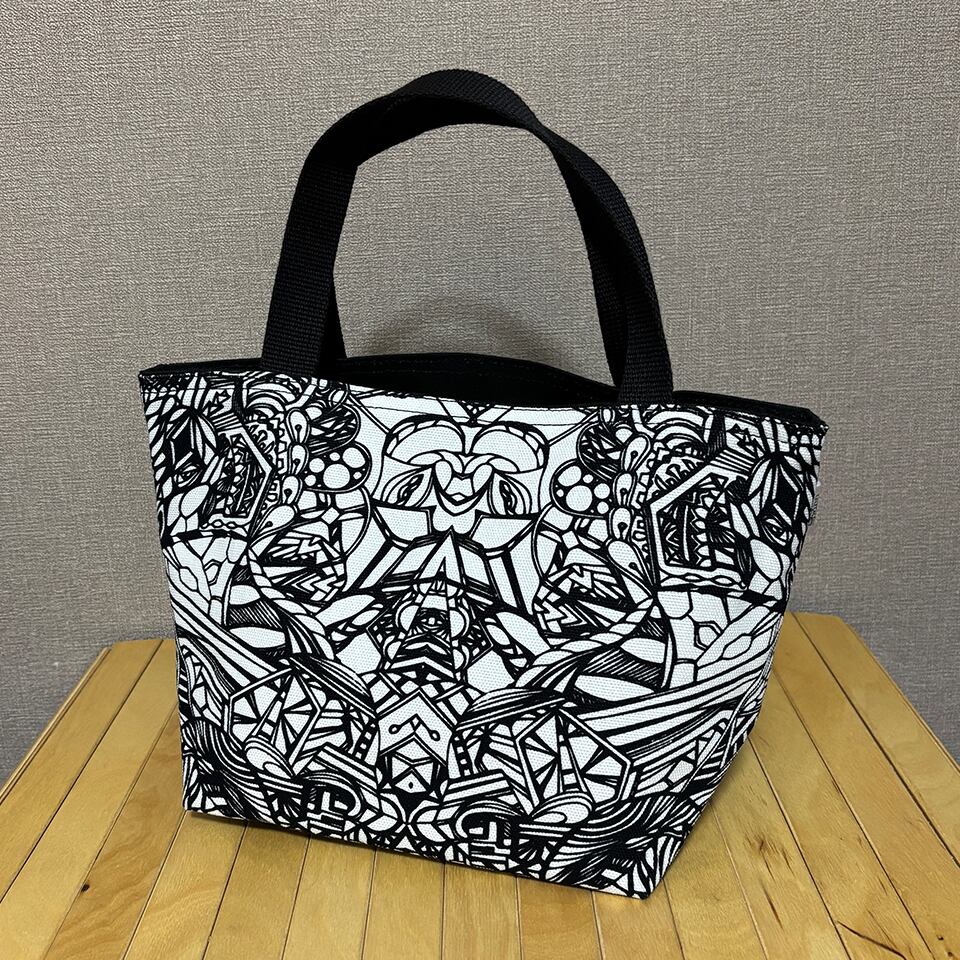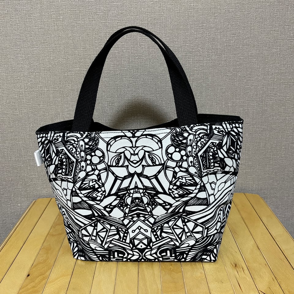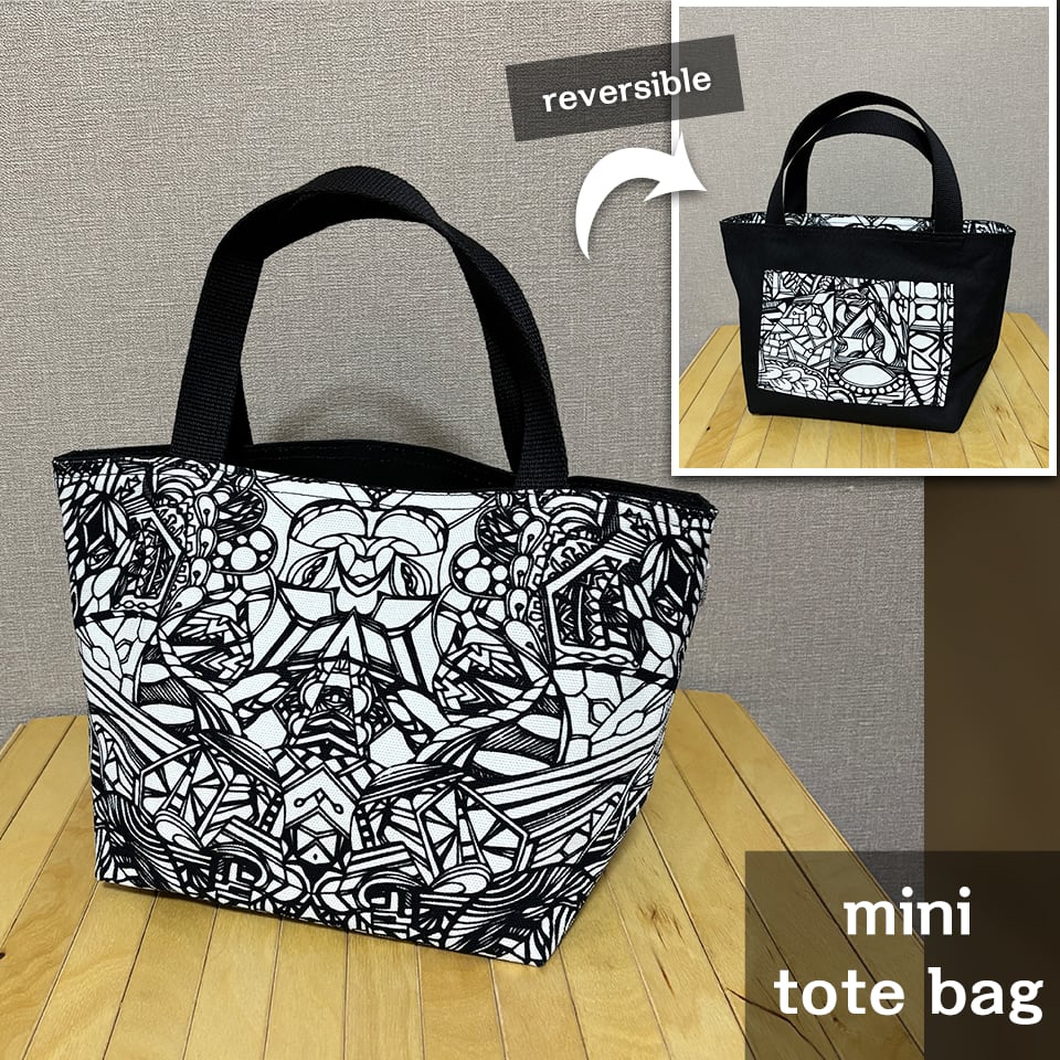 momotangleミニトートバッグ【白生地】|リバーシブル|シンメトリー柄【MTw002】