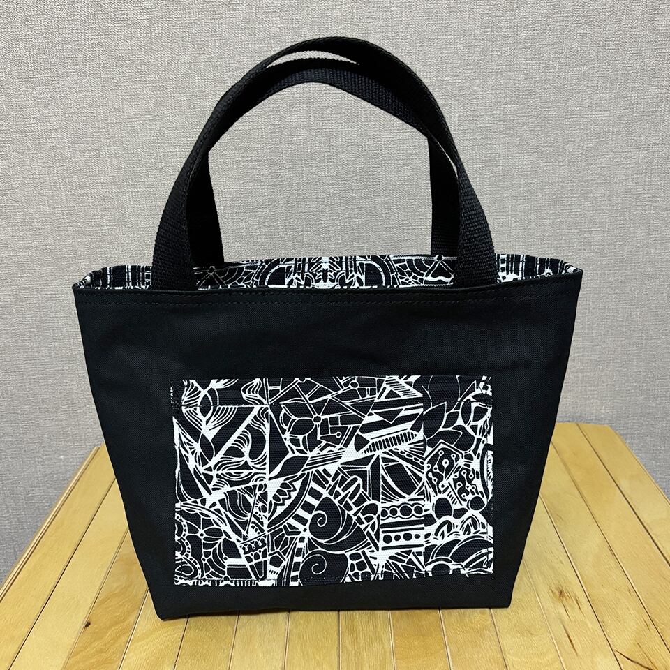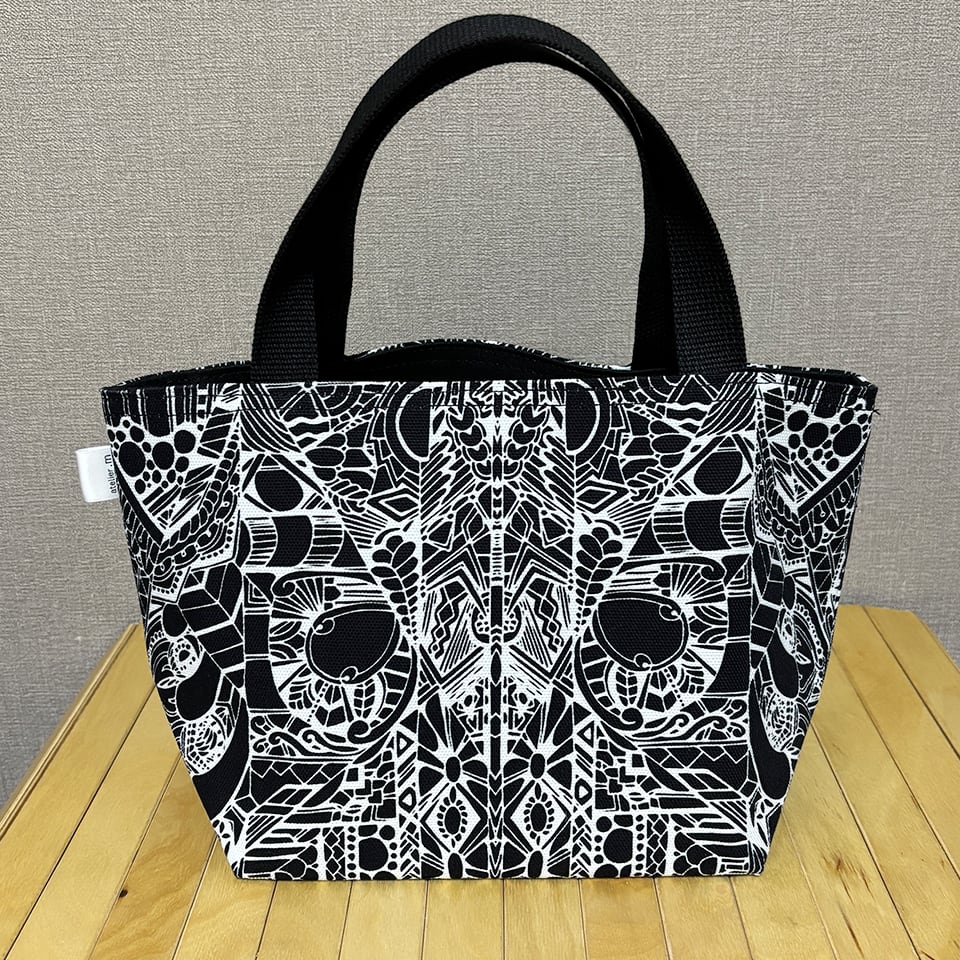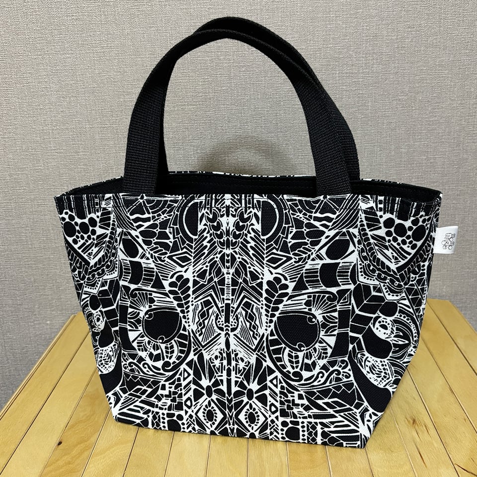 momotangleミニトートバッグ【黒生地】|リバーシブル|シンメトリー柄【MTb003】