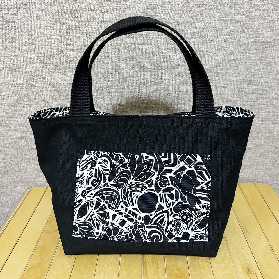 momotangleミニトートバッグ【黒生地】|リバーシブル|シンメトリー柄【MTb004】