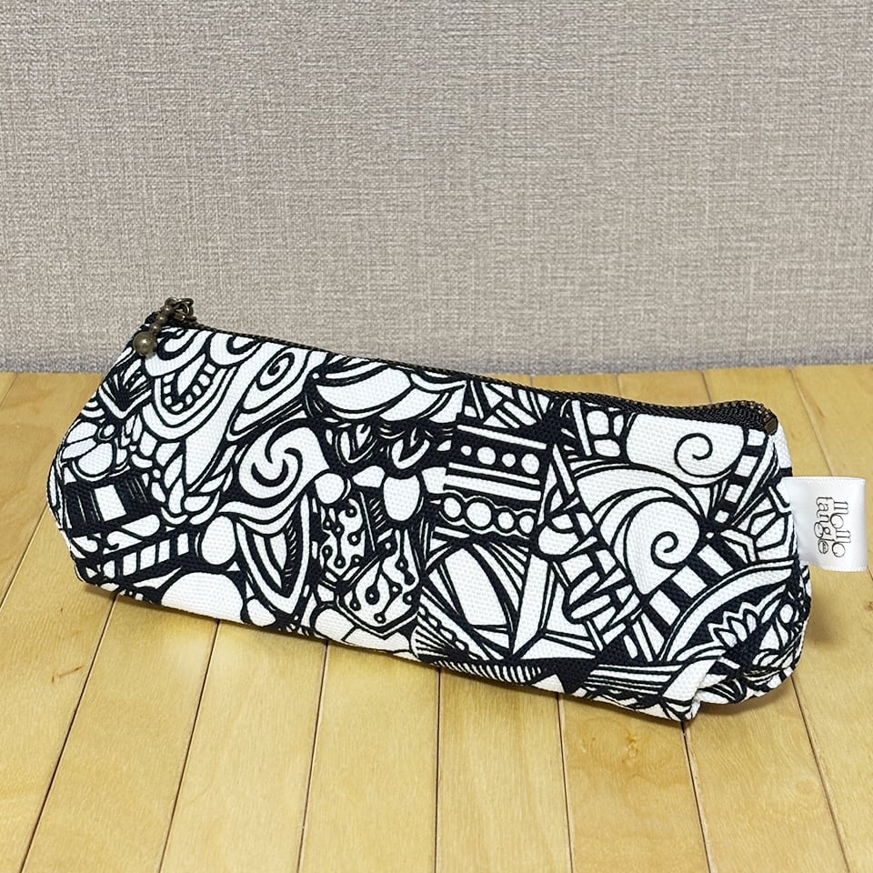 独創的な「momotangle」のアートを、職人による丁寧な仕立てで様々なアイテムを収納できるマルチポーチに昇華させた、コラボレーションアイテムです(オリジナルタグ付き)