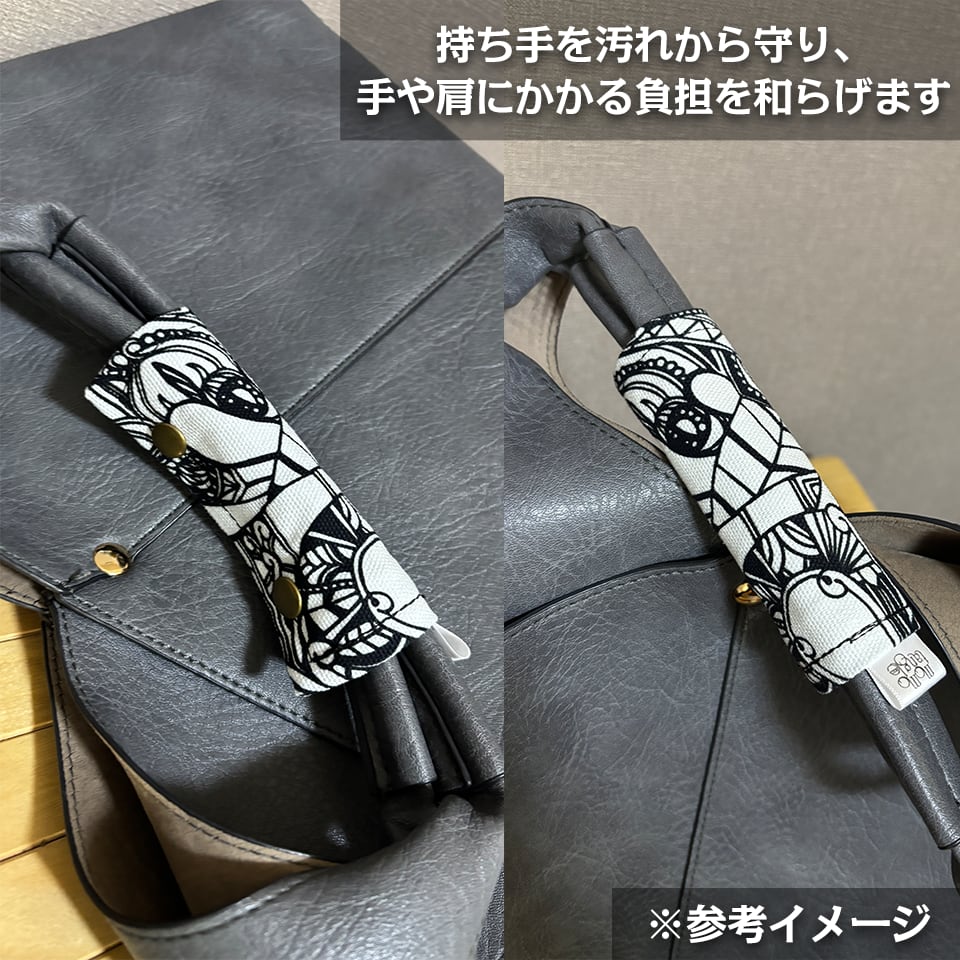 独創的な「momotangle」のアートを、職人による丁寧な仕立てでハンドルカバーに昇華させた、コラボレーションアイテムです(オリジナルタグ付き)