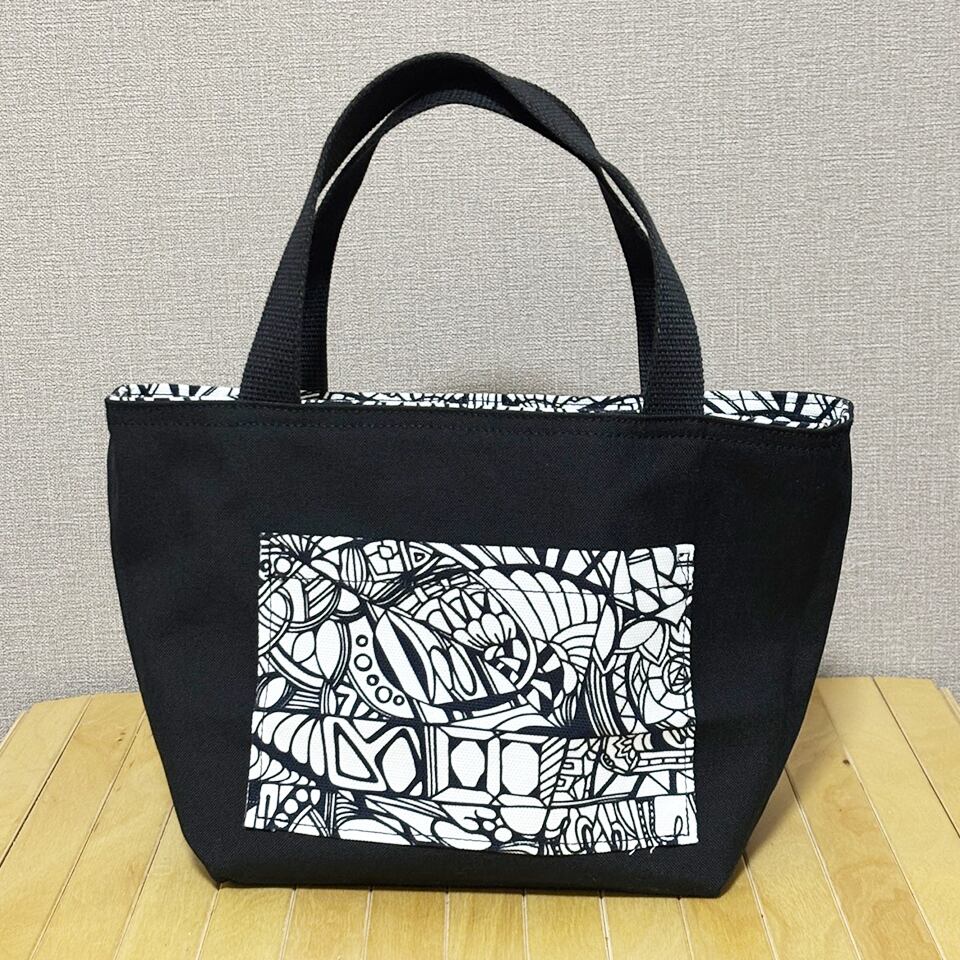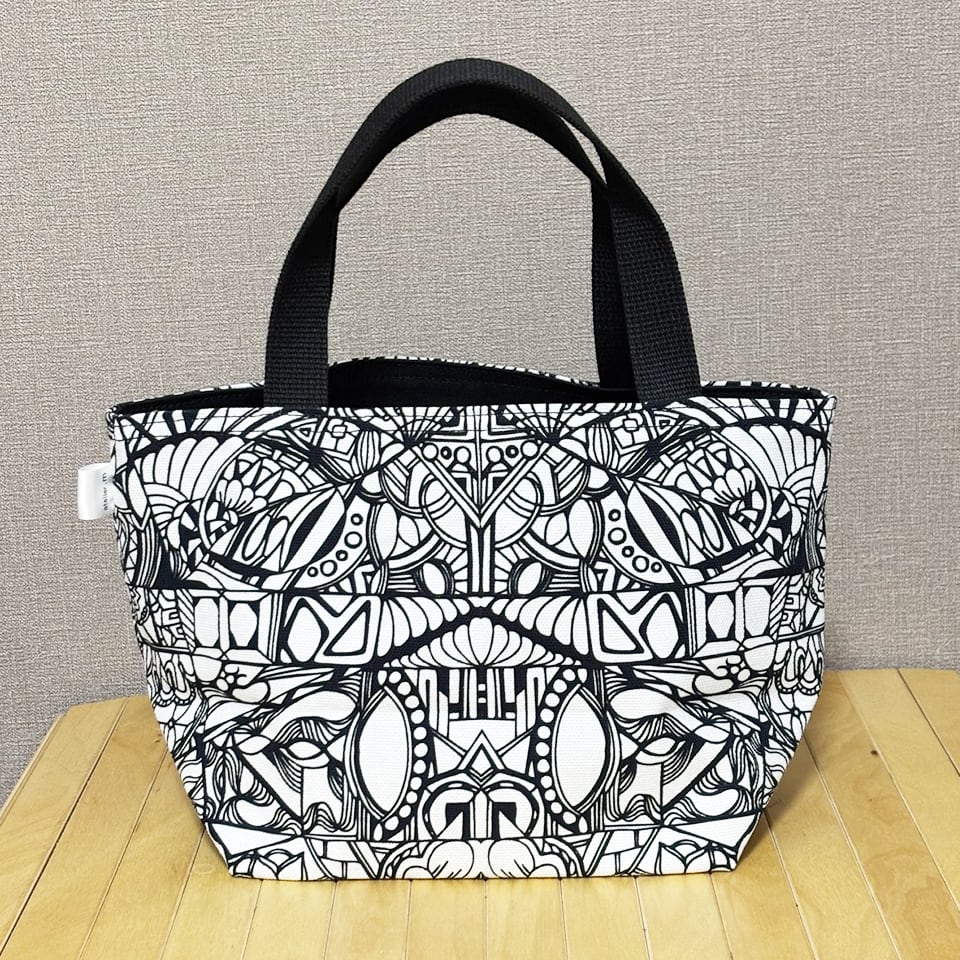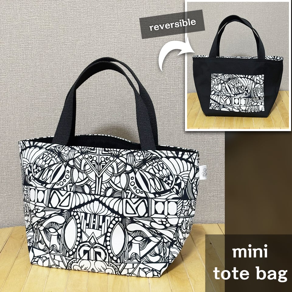 momotangleミニトートバッグ【白生地】|リバーシブル|シンメトリー柄【MTw004】